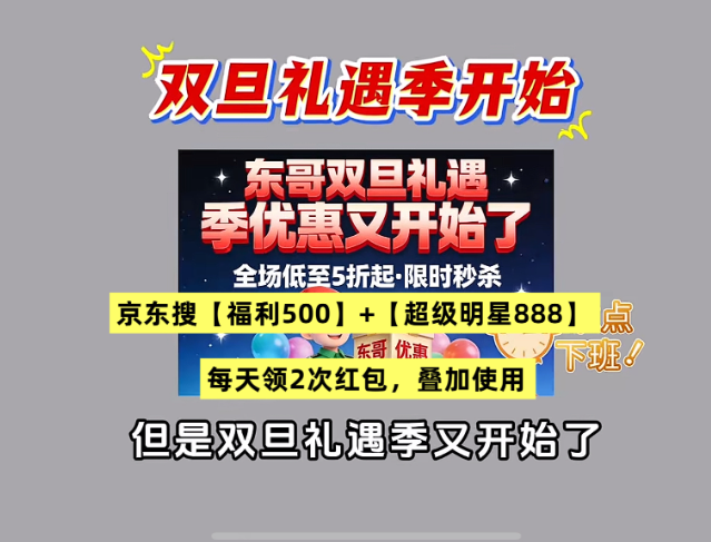 京東雙旦禮遇季是京東銜接圣誕與元旦的年末大型促銷活動,集結(jié)全品類好物,以“國補(bǔ)+平臺滿減+專屬紅包”三重讓利為核心,覆蓋家電、數(shù)碼、蘋果產(chǎn)品等熱門品類,是2025年末最后一波國家級補(bǔ)貼狂歡,優(yōu)惠力度比肩雙12,年末囤貨不容錯過!