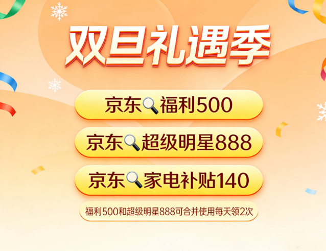 京東雙旦禮遇季福利疊加力度拉滿!搜索【福利500】【超級明星888】兩大核心口令,每天可領(lǐng)2次,疊加國補(bǔ)+跨店滿減最高直省千元!國補(bǔ)額度12月31日截止,熱門品類庫存告急,建議提前搜口令領(lǐng)券、加購心儀商品,在爆發(fā)期或加碼時段下單,既能鎖定雙重紅包福利,又能保障庫存不告罄,用超劃算價格開啟新年美好生活~
